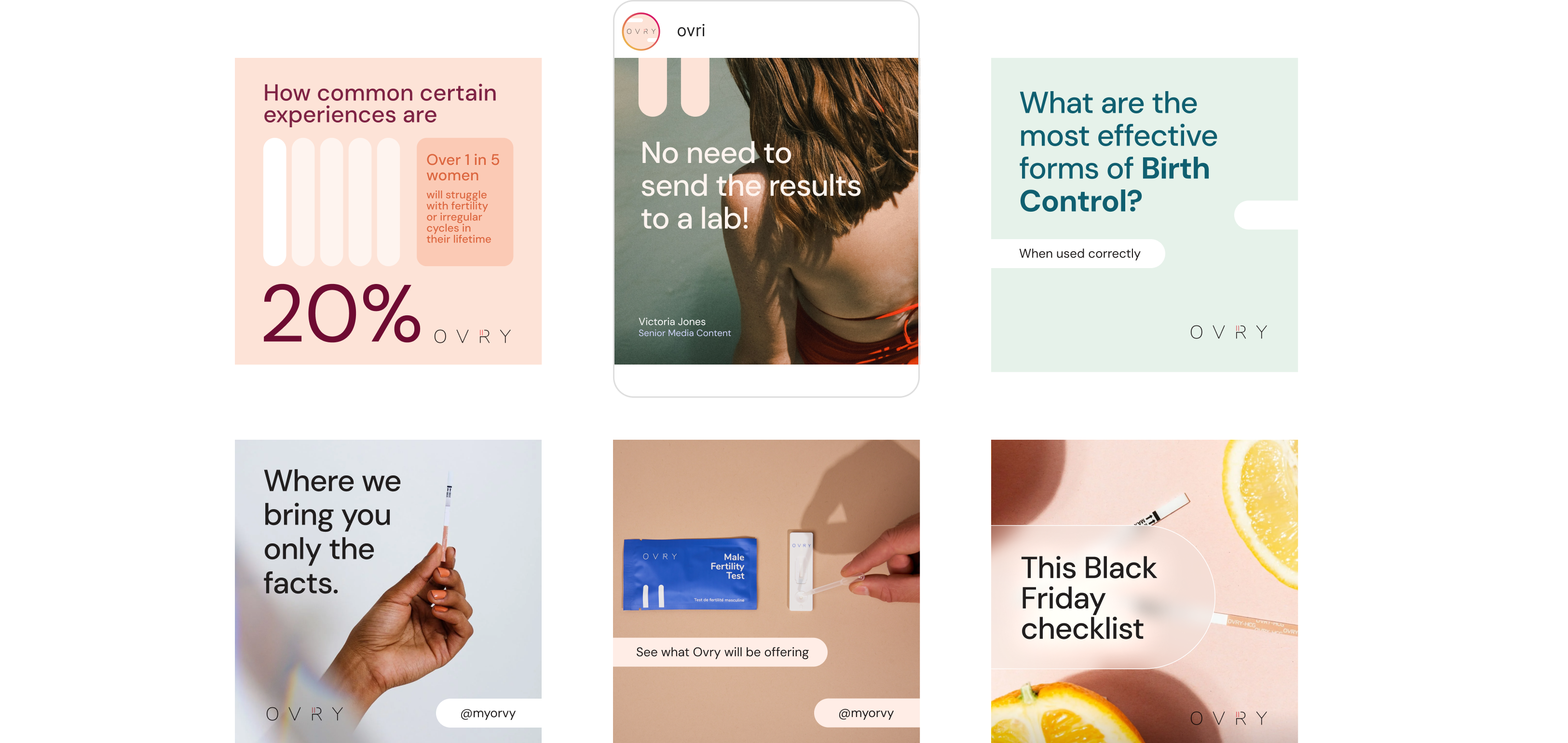 As the lead creative designer for Ovry, I established the brand’s identity from the ground up - designing the logo, defining the color palette, and shaping a cohesive visual system. I translated this identity across social media, website, email marketing, and other digital channels to build brand awareness and establish Ovry as a trusted name in women’s health