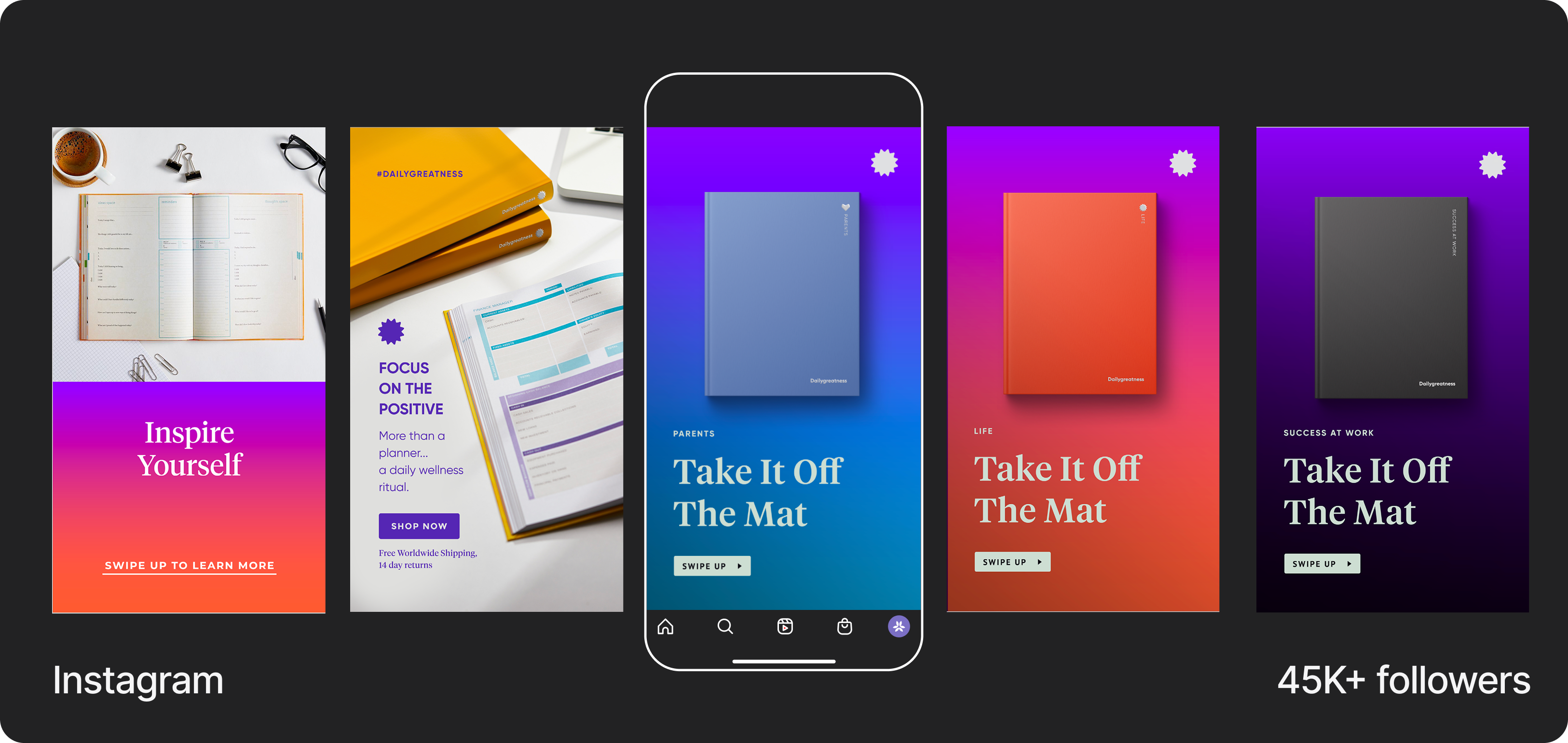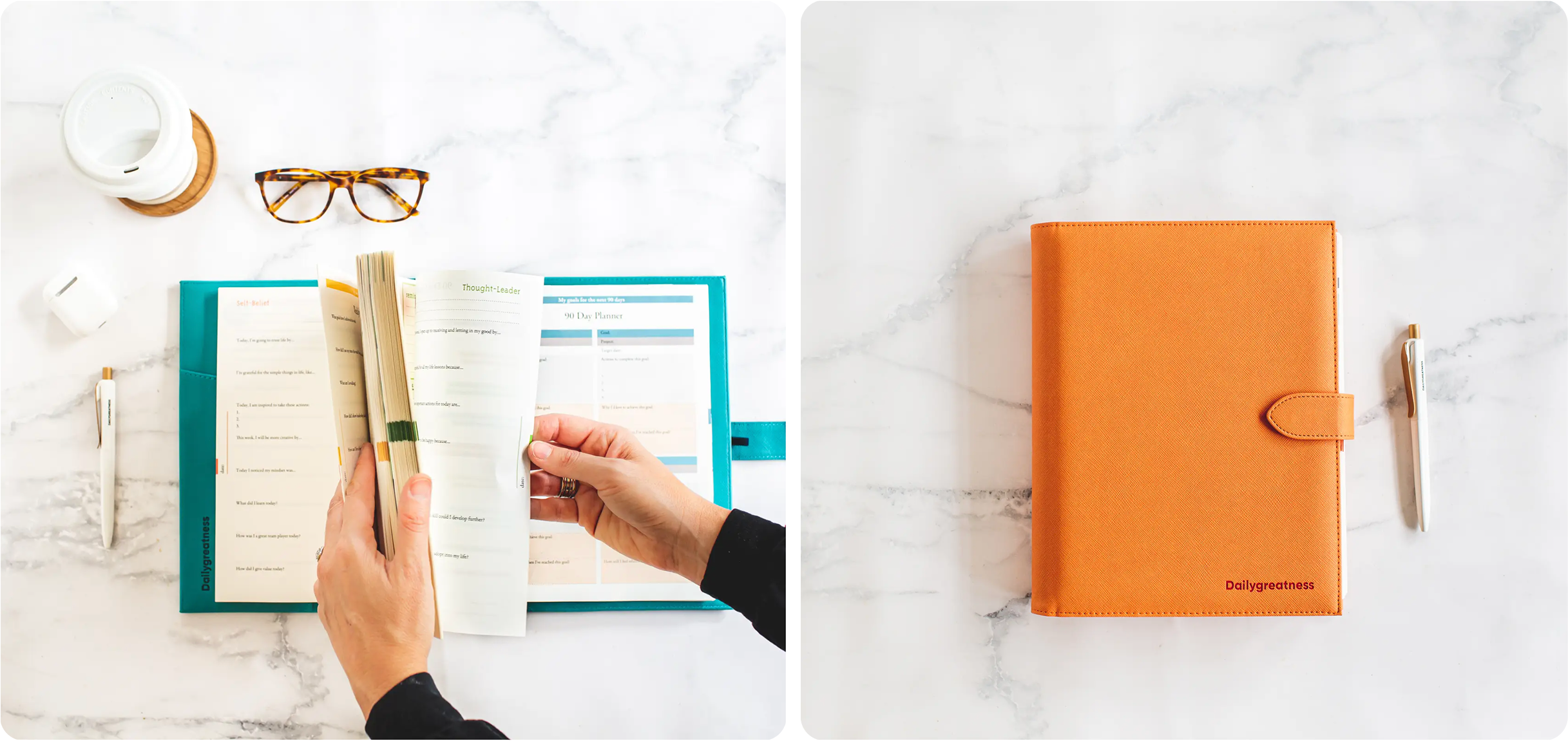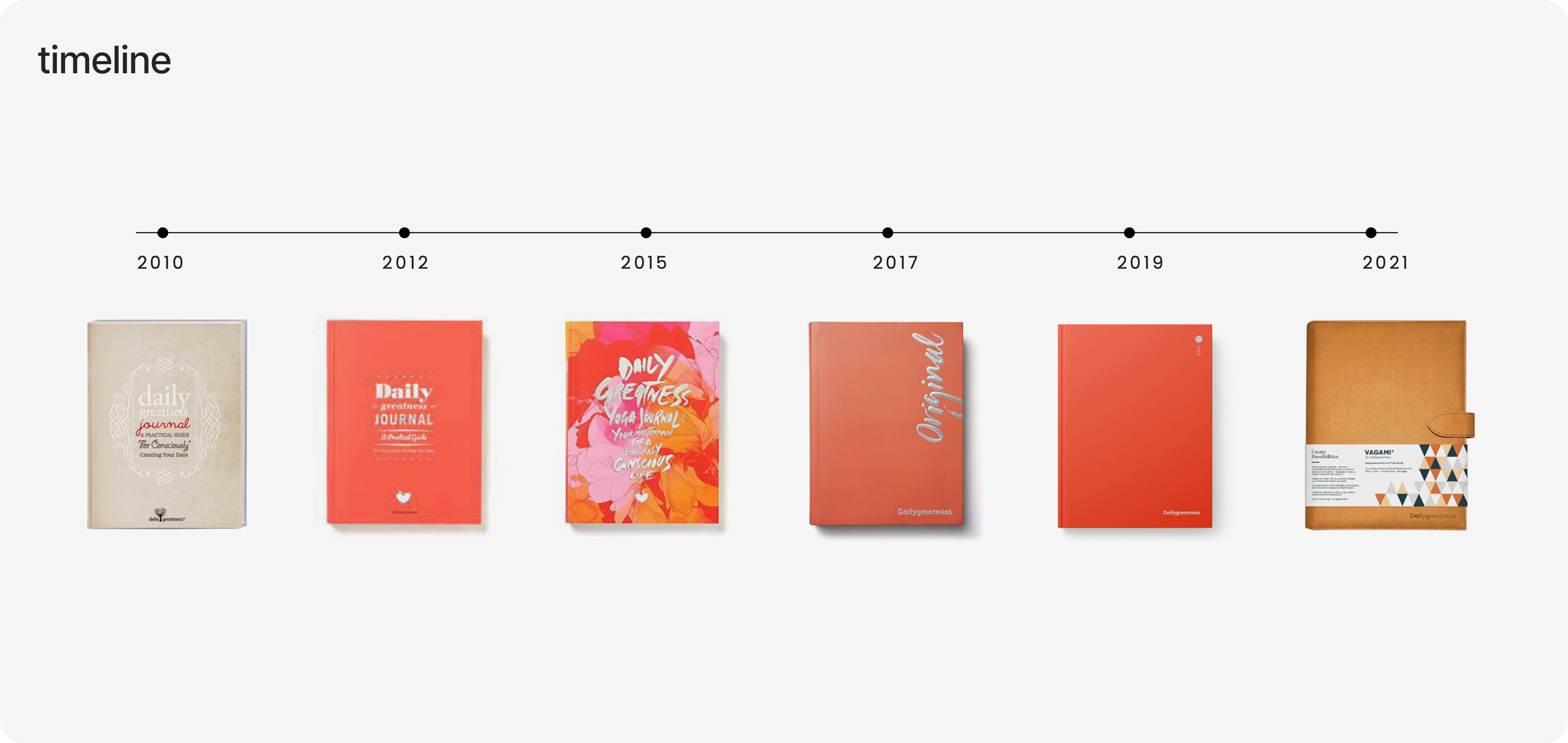 For over a decade, I led the creative and brand evolution of Dailygreatness, a globally recognized personal growth platform offering tools for mindset, wellbeing, and productivity. What started as a single printed planner grew into a category-defining brand with a global community of over 250,000 customers in 30+ countries. I guided the brand through product design, digital transformation.